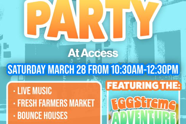 Join us for our Block Party at Access on Saturday, March 28 from 10:30 AM–12:30 PM! This event is for everyone—families, friends, neighbors, and the whole community. Enjoy live music, a farmers' market, bounce houses, shopping vendors, and food trucks, plus EGGstreme Adventure for kids with a massive egg hunt and fun activities. All are welcome, and we’d love to see you there!