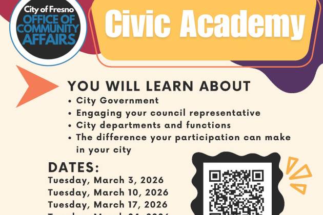 Join the City of Fresno Office of Community Affairs for Civic Academy, a hands-on learning experience designed to help residents better understand how city government works. Participants will learn how to engage with their City Council representative, explore city departments and functions, and discover meaningful ways to get involved in shaping our community.