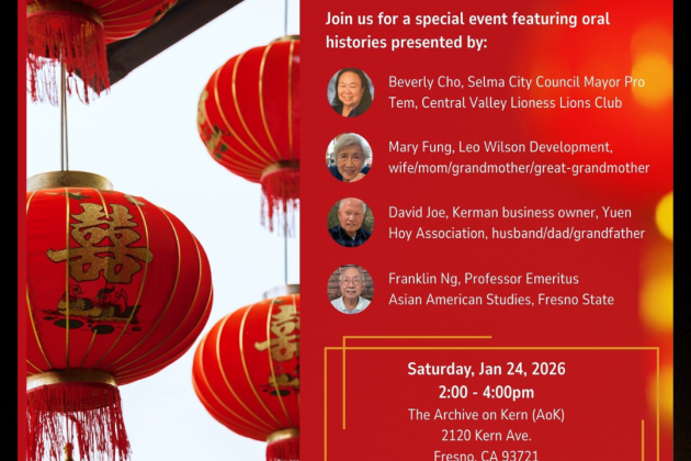 Please join us in this culturally rich event being hosted at our very own Archive On Kern. In collaboration with Rich Media and the Chinese Consolidated Benevolent Association (CCBA), the Chinese American Museum Project (C.A.M.P.) recorded four powerful oral histories that capture lived experiences, family histories, and shared heritage leadership, where you will hear first-hand of the experiences that helped grow the amazing people we have today.