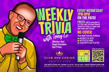 Club One Casino is a 51-table cardroom casino located at 3950 North Cedar Avenue in Granite Park. We’re open 24/7/365 and offer variants of your favorite table games like Texas Hold’em, Omaha, Blackjack, Spanish 21, Fortune Pai Gow, Three Card Poker, Ultimate Texas Hold’em and EZ Baccarat. We operate a full bar/restaurant serving until 3 AM and show all major sporting and pay-per-view events. We’re just minutes from the Fresno Yosemite International Airport, conveniently located off the 168 freeway. Come visit us today! Please drink and gamble responsibly. Dial 1-800-GAMBLER for help.